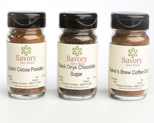 -. Feature : Gifts for Chocolate Lovers / Our Chocoholic gift sets contain some of our most decadent offerings for the chocoholics out there. / Enjoy the rich, cocoa infused flavors of Baker's Brew Coffee Spice and the classic, smooth Dutch Cocoa / Contains 2 floz Bottles of Baker's Brew Coffee Spice, Black Onyx Chocolate Sugar, Dutch Cocoa Powder