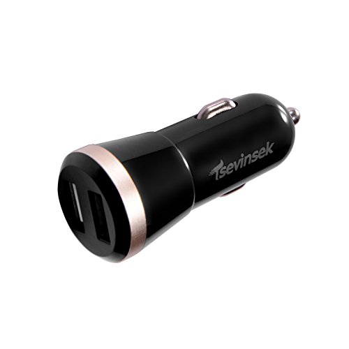Tsevinsek Car Charger Dual USB Portable 5V/2.4A 2-USB Port Fast Car Charger for iPhone 7 / iPhone 6 / 6s, iPad Pro / Air 2, Samsung Galaxy S7 / S6, Google Pixel, LG and More Android Phones (Black)