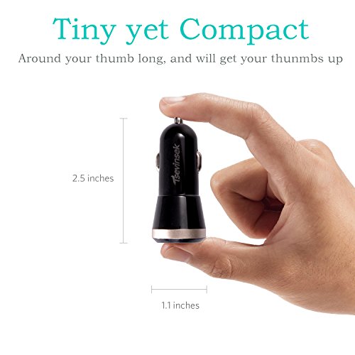 - [We offer One-Year-Warranty] Tiny yet compact: Same size as Anker PowerDrive 2 car charger. One of the smallest USB car charger adapters. It’s RoHS, CE & FCC-certified for complete safety and reliability. No affect to Radio, Bluetooth or Wi-Fi