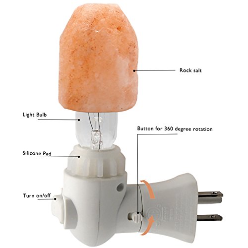 LIGHTWEIGHT, SAFETY & CONVENIENT: SCOPOW Salt Amber Light/ Lamp is very light weight because the weighty is only about 10.58 Ounces. Safe and convenient because UL Certification Plugs right into the wall with no cords to trip over or extra space needed. Adjusts 360 degrees around for horizontal sockets. 3 prongs for stability.