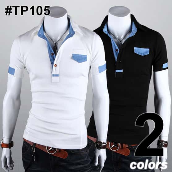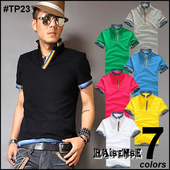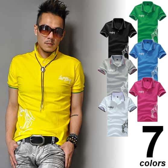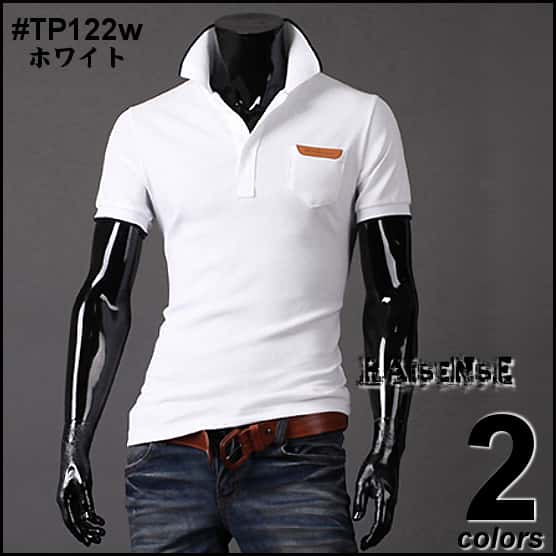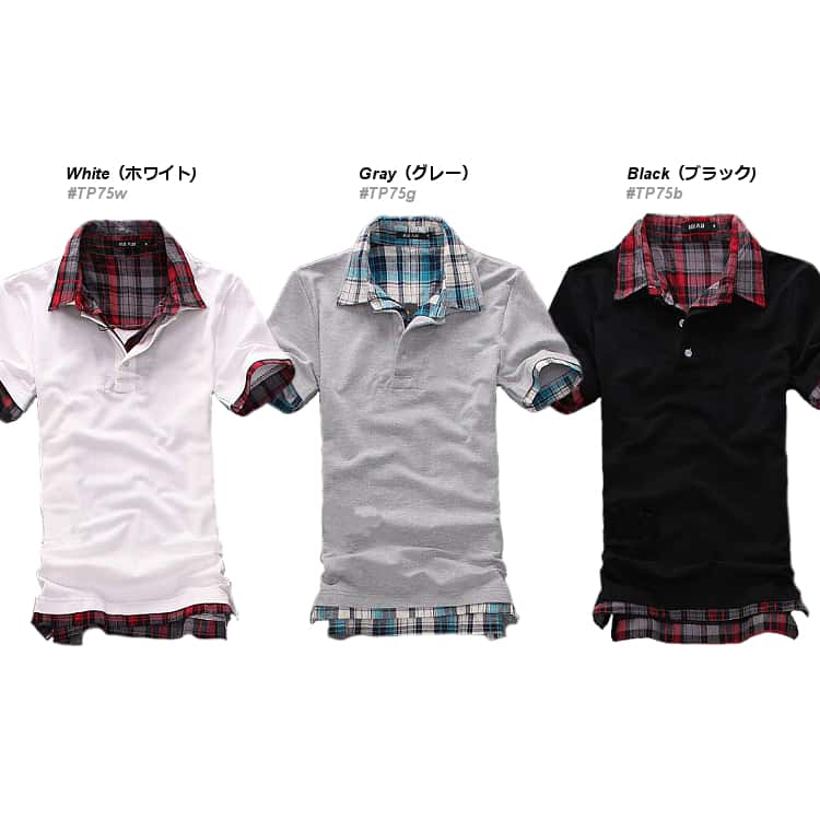 人気商品!スリム重ね着風半袖ポロシャツです。