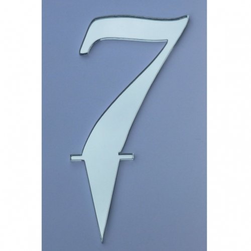 7 Silver Acrylic Mirror Cake Topper Number Script 10cm (4inch) Number Height inc spike 15cm