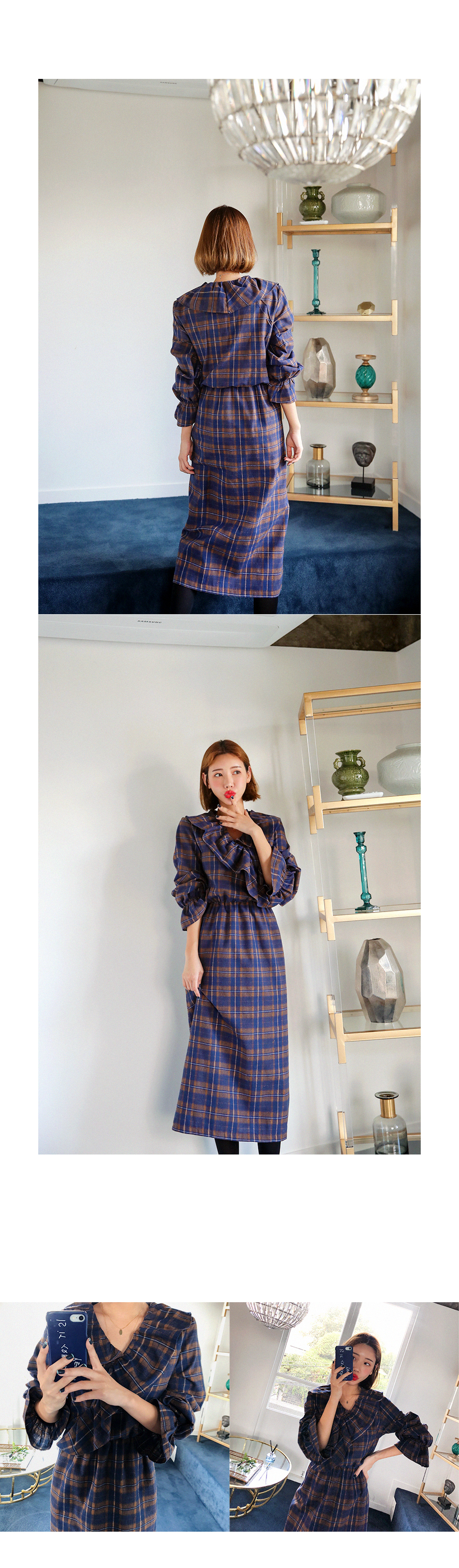 원단이 몸에 감기지 않아 바디라인이 커버되요. 넥라인을 V라인으로 디자인하여 얼굴이 갸름해보이는 연출까지 되는 똑똑한 원피스에요.