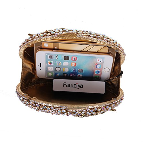 -. Feature : Diamonds:Fawziya use domestic grade A diamonds,12 cutting surface,a long-lasting gloss retention,one of leader in high class diamonds. / Hardware:Fawziya using K Gold plating process,each hardware is carefully selected,no scratches,no rust on the surface. / Fabrics:Fawziya use silk and satin,these materials are light,soft,colorful,shiny,noble and elegant. / The approximate size is 20(L)x7(W)x15(H)cm,Chain: 120cm long chain removable. / Ideal for holding essentials like keys,mirror for touch-ups, lipstick and a iphone 6.