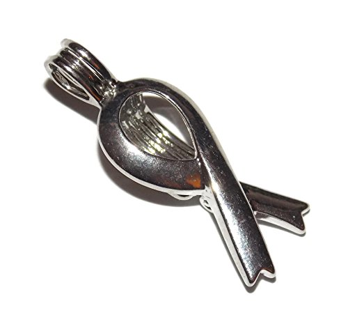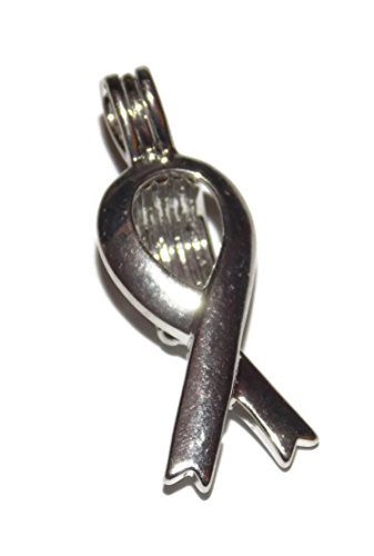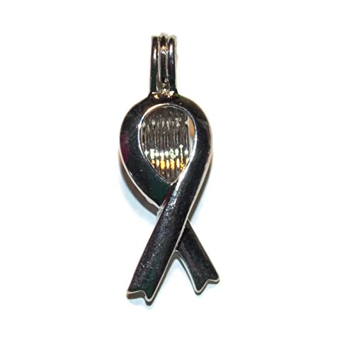 Awareness Ribbon Bead Cage - Old School Geekery Brand Jewelry Making Supplies - Hollow Silver Plated Bead Cage Pendant