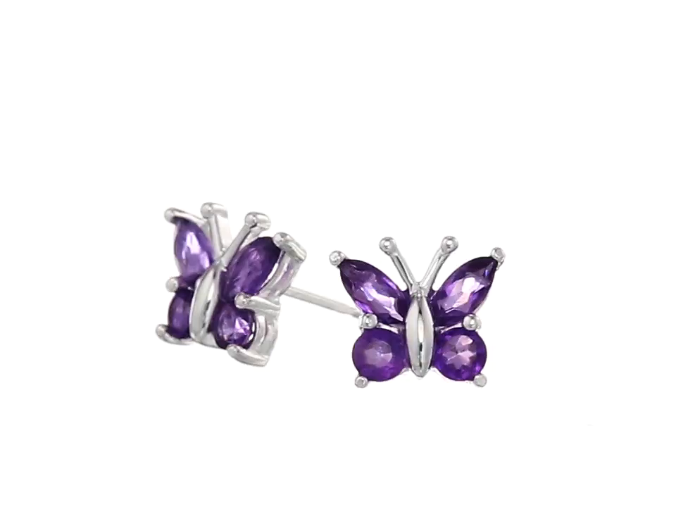 Sterling silver butterfly stud earrings featuring marquise and round-shape gemstones
