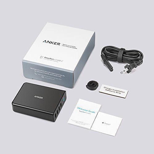 - Feature : The Anker Advantage: Join the 10 million+ powered by America's leading USB charging brand. / Fast-Charging Technology: USB-C Power Delivery charges USB-C devices, like the new MacBook, at full speed. In the other ports, PowerIQ intelligently recognizes your device and boosts its charging speed, up to 2.4A per port.* / Five Ports: 1 USB-C port with Power Delivery and 4 standard USB ports with PowerIQ allow simultaneous multi-device charging at high speed. / MultiProtect Safety System: Keeps your devices safe with surge protection, temperature control and more advanced safety features. / What You Get: Anker PowerPort+ 5 USB-C with USB Power Delivery, instruction manual, AC cable, our worry-free 18-month warranty and friendly customer service.