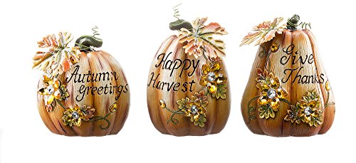3 Pc Set Autumn Greetings Happy Harvest Give Thanks Polystone Pumpkin Figurines
