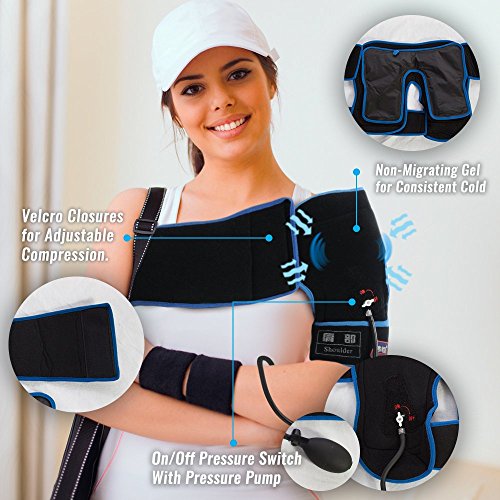 Inflatable Air Compression Gel Wrap For SHOULDER Pain Relief. Reusable Cyro Cold Therapy Is Colder Than Ice For Long Last Pain Relief From Spasms, Swelling And Sore Muscles. Pneumatic Compression Wrap