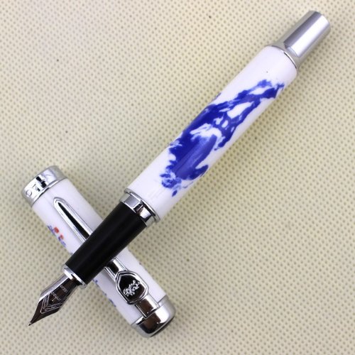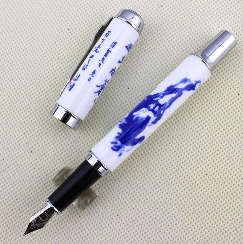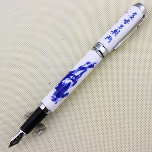 -. Title : Luxury Fountain Pen Jinhao 950 Blue and white porcelain with Chinese CALLIGRAPHY and Horse Medium Nib 18KGP
