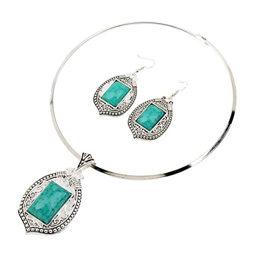 - Title : Ginasy Big Resin Pendant Collar Necklace and Earrings Set (Green)