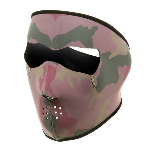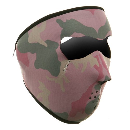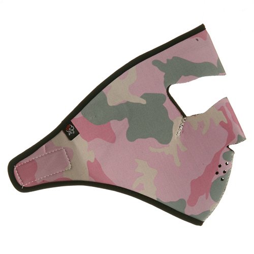 Binding : Apparel Product Description For those occasions when you need partial face protection from the dashing winds and extreme cold, we offer you this reversible pink camo mask of polyester and neoprene. With shaped nose with open tip, and holes at the mouth, the thick yet flexible material will form to your face and over your ears to provide you with a comfortable fit. The mask is secured with a wide adjustable strap at the back, with a solid black on side and when reversed. Ideal for snow sports, the cushiony featherweight material is weather tested and engineered to keep the harmful elements of cold weather at bay. Made of 70% Neoprene and 30% Polyester. One size fits most with velcrorized strap closure. Face measures 9 inches high, 24 inches wide. Reversible, piped edges for better fit. Hand washable. Water, wind resistant material. Imported. Available in many designs. 0