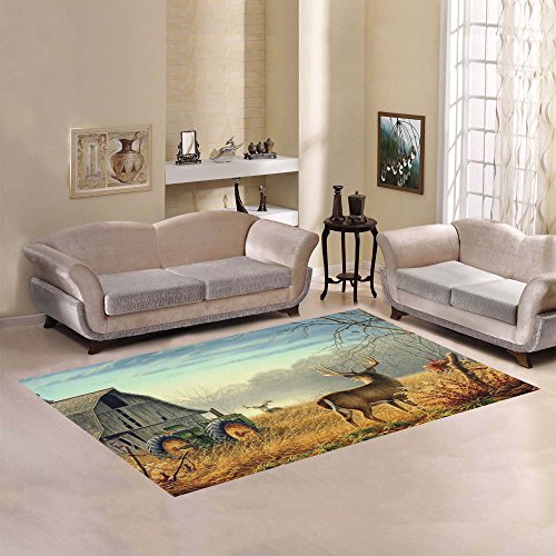 (Area Rugs)/Nursery/Nursery Decor/DIRECT FROM USA/JC-Dress Area Rug Cover Deer Farm Fence Field Modern Carpet Cover 7'x5'