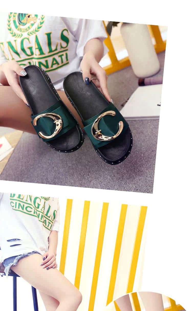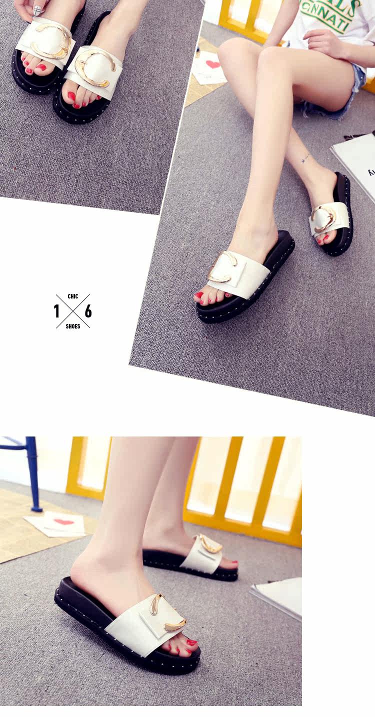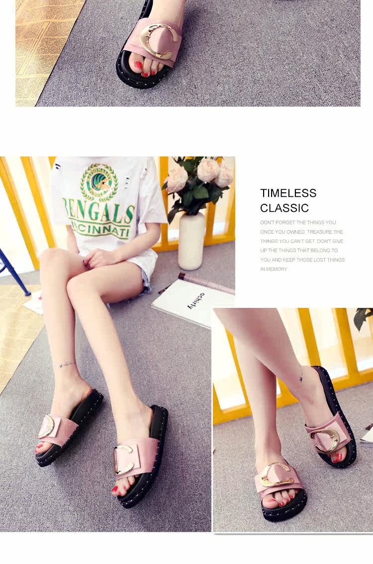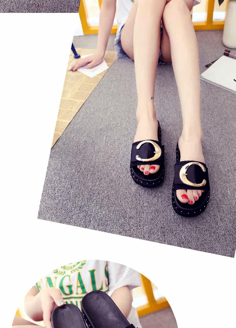 松糕拖鞋平底女夏季沙滩鞋搭扣时尚韩版外穿凉拖布一字拖厚底中跟
