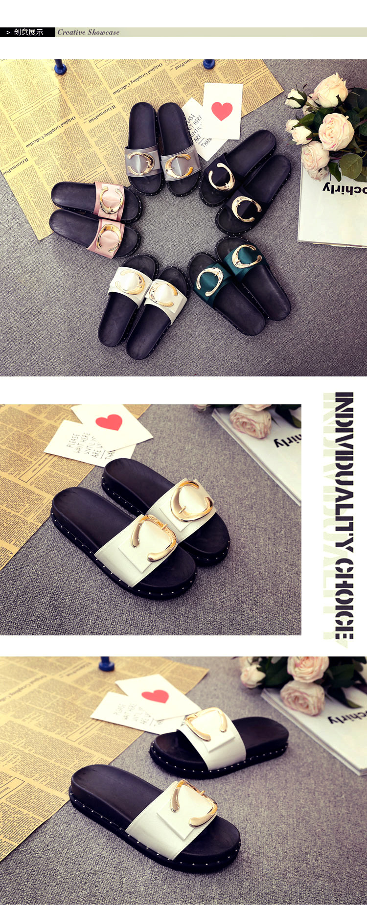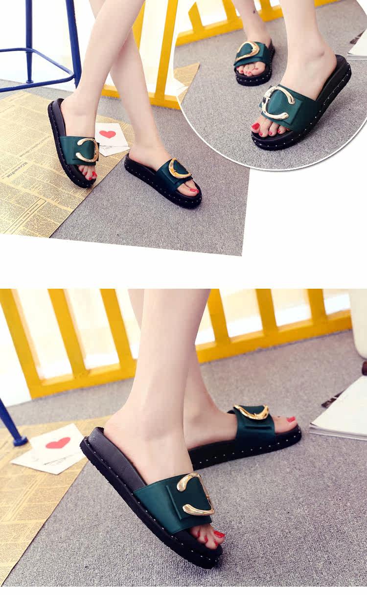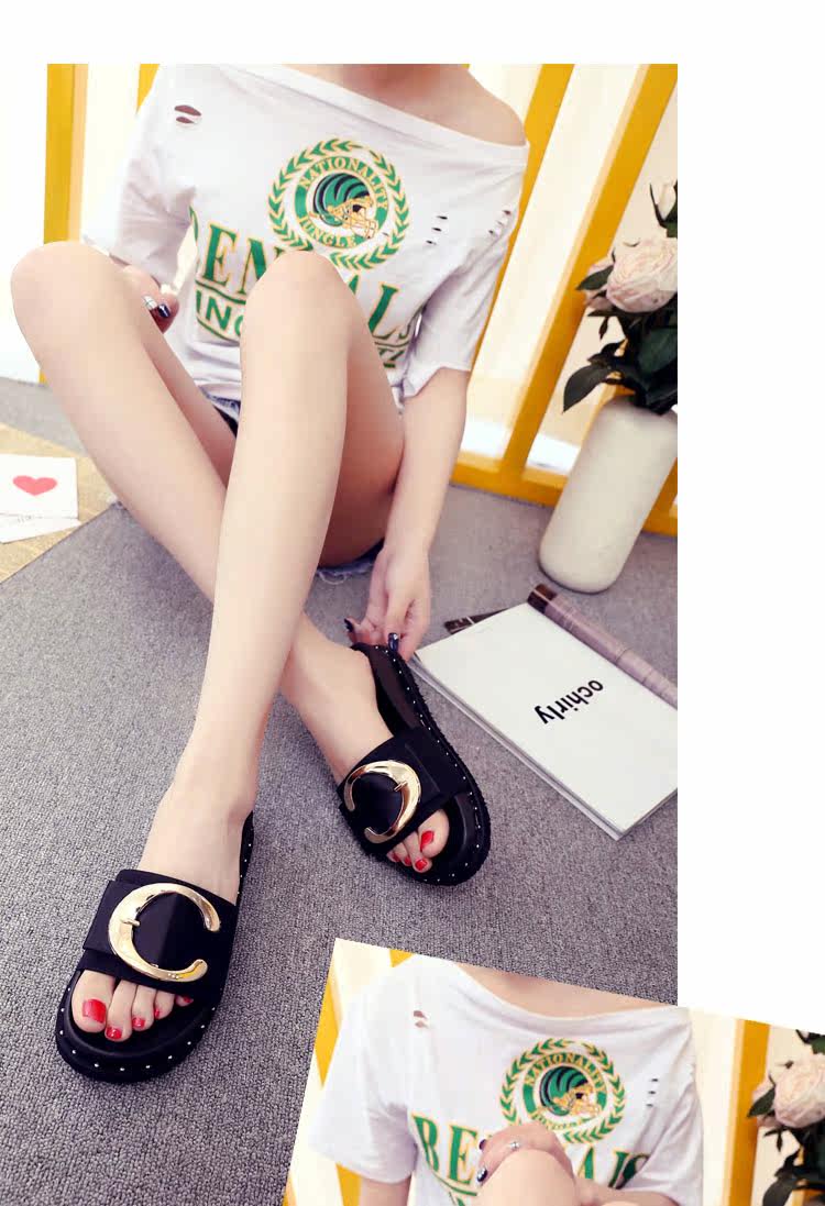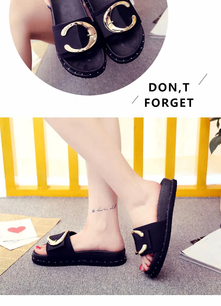 松糕拖鞋平底女夏季沙滩鞋搭扣时尚韩版外穿凉拖布一字拖厚底中跟