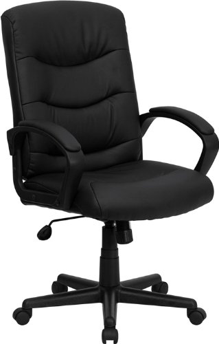-. Title : Flash Furniture Mid-Back Office Chair - Black Leather