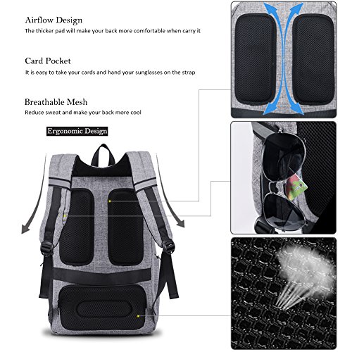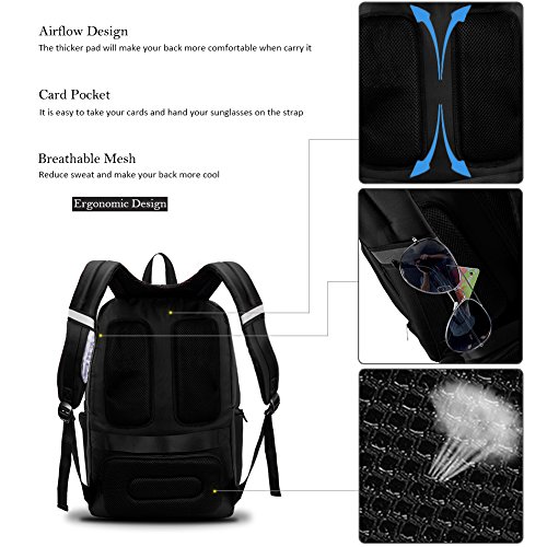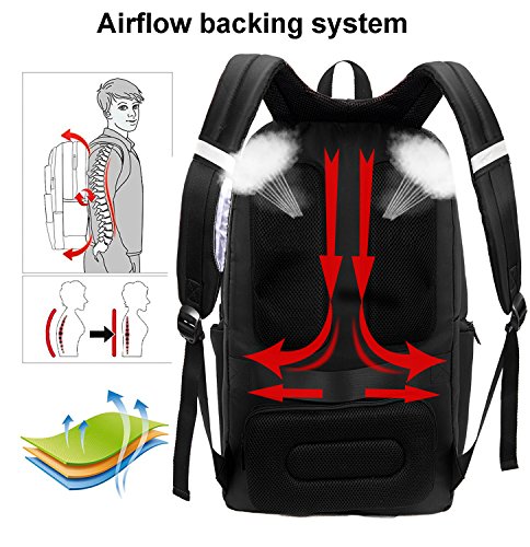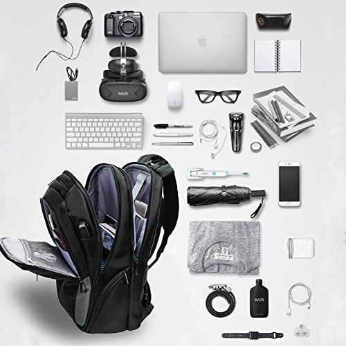 -. Feature : DIMENTIONS - 19 x 15 x 6 inches with dedicated Laptop compartment fits most under 17.3 inches Laptops. Large capacity allows you to carry more stuff. / USB PORT - Make it more convenient to charge your cell phone, tablet PC by connected with internal cable to power bank when in outside travel. Is it so convenient? / MATERIAL - Made of eco-friendly Quality Nylon fabric, metal zippers, water-repellent, Reflective stripes on the straps to keep you safe when ridding or walking in the dark, airflow design with thick breathable mesh pad will make you more comfortable and keep your back cool. / MUTIL-POCKETS - 2 main compartments with multiple inner pockets and a front pocket, 2 side pockets are extensible, functional Laptop compartment keep your laptop safe with velcro strap and shockproof foam padding. Roomy clothes compartment allows you to carry your clothes, books, shoes, documents etc, conveniently deal with your trip. Including a iPad pocket, various slots for keeping mouse, charger, cards, keys, pens, laptop accessories and phones. / EXCELLENT APPEARANCE - Stylish design, excellent stitching, anti-tear, water resistant, top quality, and lining not only makes it attractive, but also durable to carry your Laptop / Notebook / MacBook / Acer / Asus / Dell / Lenovo / HP / Samsung / Sony / Toshiba etc. It provides a handle on the top to allow you carry the backpack in the other way.