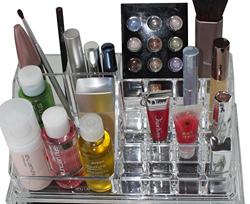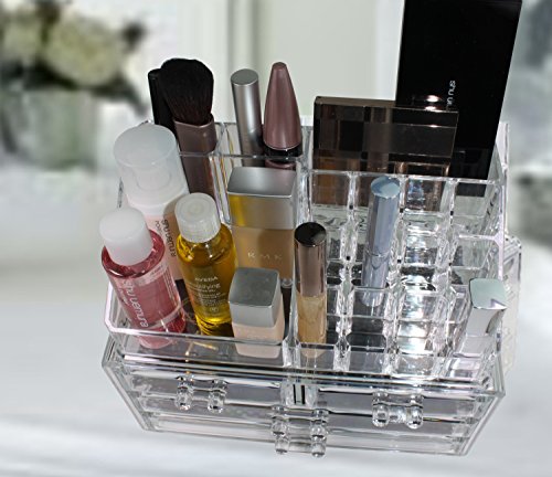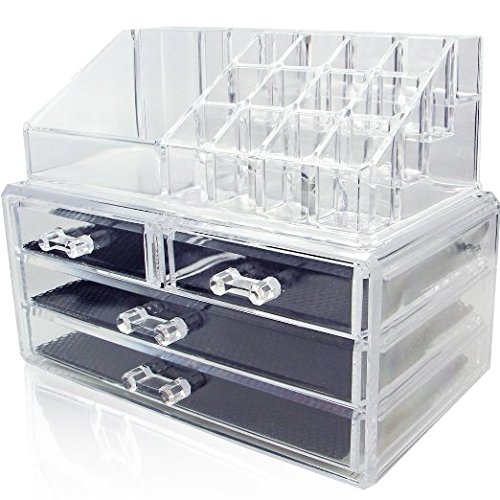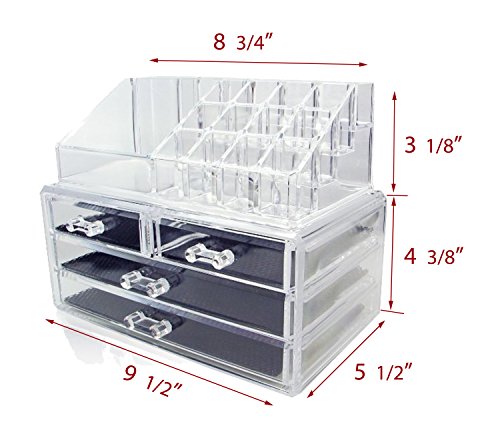ACRYLIC JEWELRY & COSMETIC MAKEUP ORGANIZER 4 DRAWERS WITH 16 COMPARTMENTS TOP SECTION US SELLER
