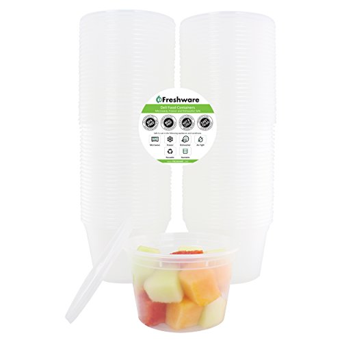 THE ULTIMATE DELI FOOD STORAGE CONTAINER SET OF 36: If you are looking for ways to make your everyday life easier, then we got you covered. Our 36 reusable plastic food storage containers are the way to go. Made from high quality materials and with the most affordable prices, our containers will become your lunch buddies everywhere you go. They have the perfect size: 4.6 inch top diameter x 3.4 inch base diameter x 3 inch height. Volume: 16 ounce/1 pint to accommodate all your needs.