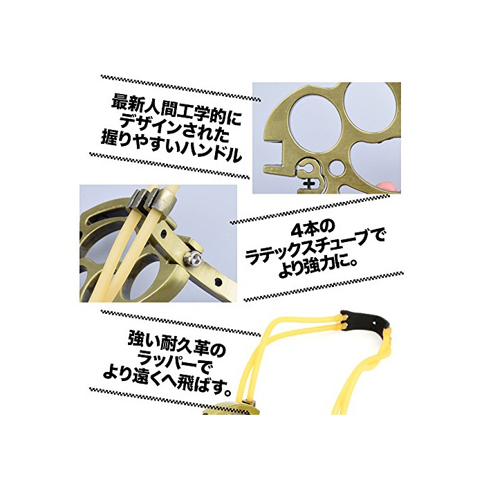슬링(sling) 쇼트는,강력한 2책의 고무에 비거리 업.손잡이는 확실히 4책의 손가락으로 통해 구멍을 쥐기 때문에 겨냥하기 쉬어 됩니다.