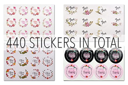 ZapFirst 440 "Thank You" Adhesive Sticker for DIY, Gift Packaging, and Package Decoration (Flower Assorted)