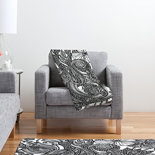 DENY Designs Valentina Ramos Bird In Flowers Black White Fleece Throw Blanket, 50 x 60