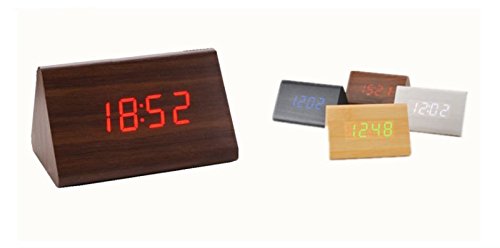 -. Title : 【 Alnair 】 デジタル LED 目覚し時計 置き時計 アラームクロック 多機能 温度計 USB給電 木目調 おしゃれ インテリア プレゼント (黒/白字)