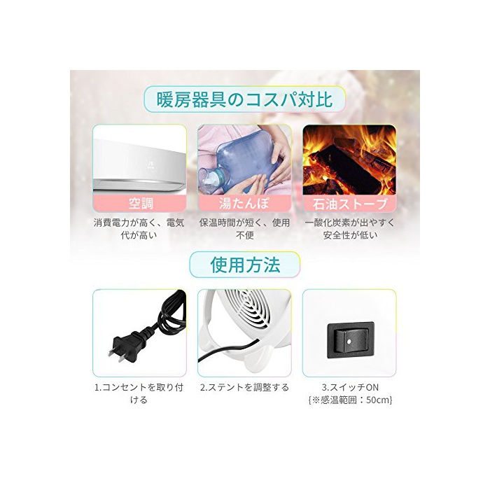 【속열,곧바로 쓸만한다】 팬 히터는 속열성이 있습니다.스위치를 열어 수초중(안)에 따뜻함을 느낄 수 있습니다.차가와졌 것번이나 발을 곧바로 난# 될 수 있습니다.조기기상이나 귀가 에 대해서 불가결의 아이템입니다.