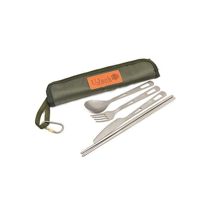 UJack(유 잭) 티타늄(티탄) 커트러리 세트 1명 용 4피스 수납 케이스 첨부 와 나이프 포크 스푼 젓가락
