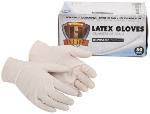 Forney 53409 Latex Disposable Gloves Fits All Sizes, White, Box of 50