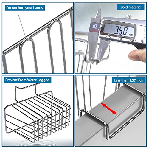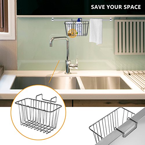 ☢ PERFECT GRID VENTILATION CHASSIS DESIGN: This sink caddy is the design of grid ventilation chassis, fully filtration and no standing water, effectively prevent bacterial from growing. It can be hung directly on the edge of a 1.57inch sink to save space.