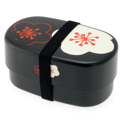 Kotobuki 2-Tiered Bento Box, Black/White Plum
