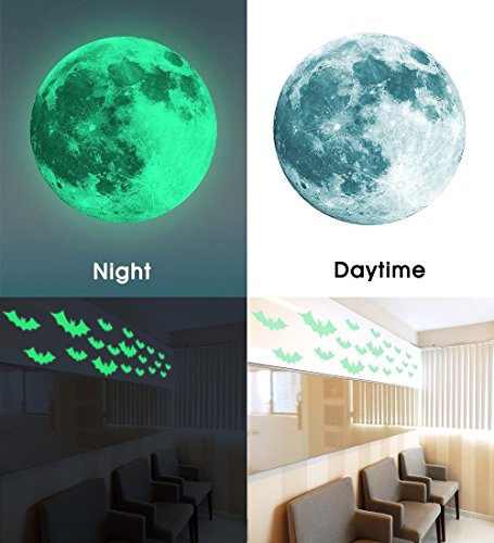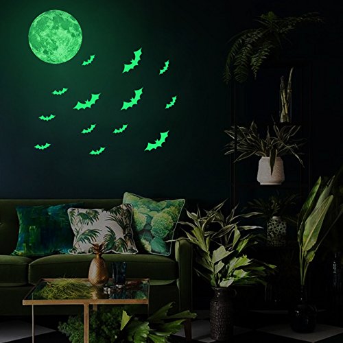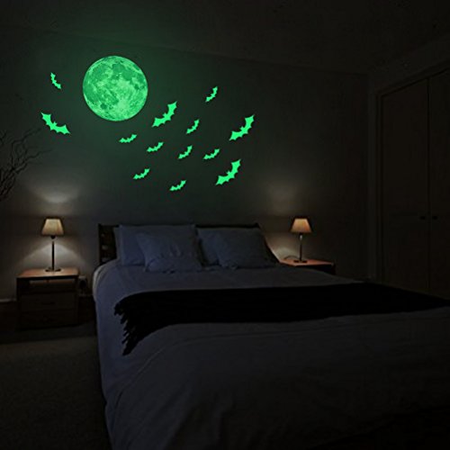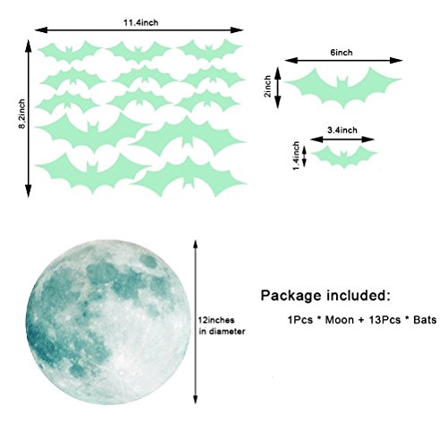 Creative Moon with Bats Halloween Decorations Wall Decals Glow in the Dark, XYIYI Luminous Light Stickers for Halloween Party Kids Home Room Décor