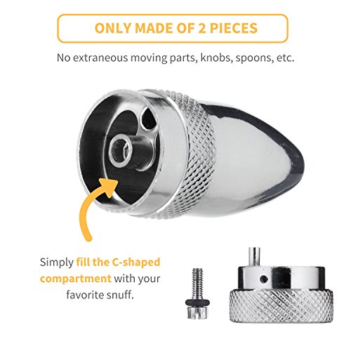 Posh Premium Silver Metal Snuff Bullet (Anodized Aluminum) w HumanFriendly Micro Funnel - Twist Nasal Sniffer