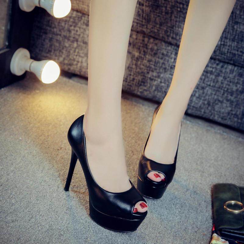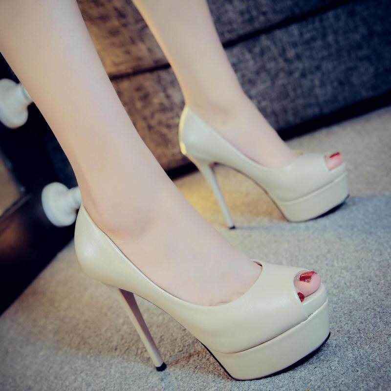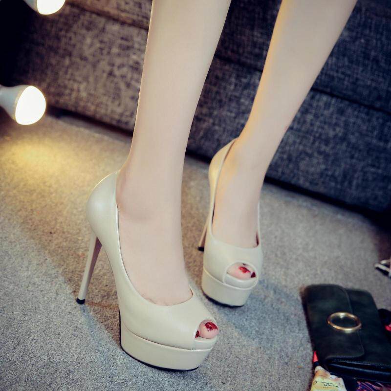 13cm超高跟鱼嘴鞋细跟防水台米色职业工作单鞋裸色秋新款高跟鞋女