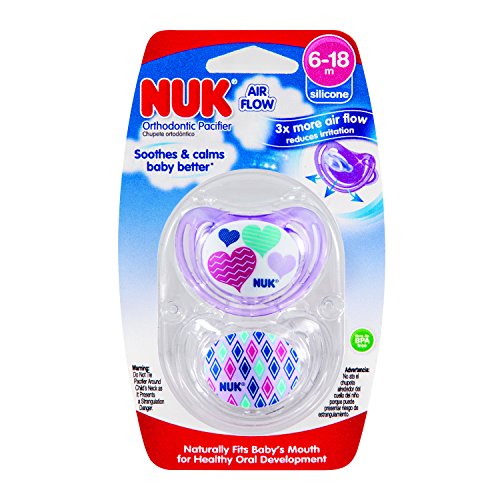 NUK Airflow Orthodontic Pacifier with Hearts Design, 6-18 Months