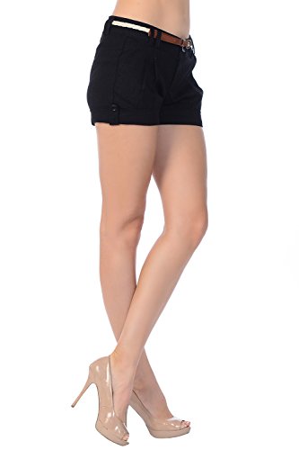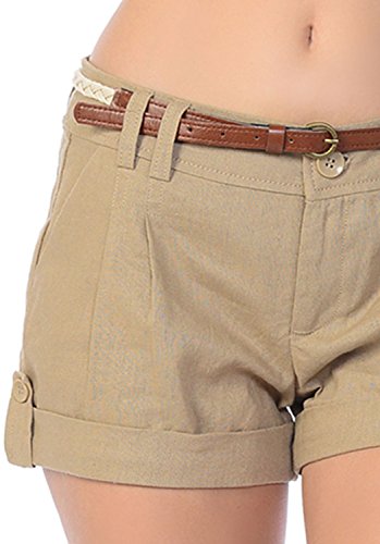 -. Binding : Apparel -. Brand : Jubilee Couture -. Department : womens -. Feature : Extra Replacement Button Include / Thin and light linen fabric, great quality over cheap thick linens / String Knot Tie Belt Included, Zip-up and Button Closure / Two Functional Front Pockets and Two Back Pocket Design, Cuffed Hem / May run a little small as the fabric is not flexible. We sest to order a size bigger. -. Model : 14SP10025 -. ProductGroup : Apparel -. ProductTypeName : SHORTS -. Title : Shine K Women's Side Button Detailed Linen Cargo Shorts