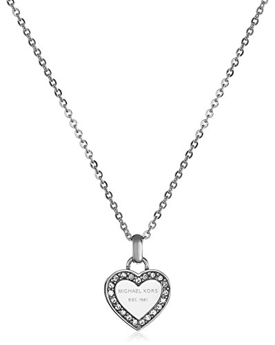 -. Feature : Necklace featuring pave-embellished heart charm with logo engraved at center / Rolo chain with lobster-claw clasp / Imported