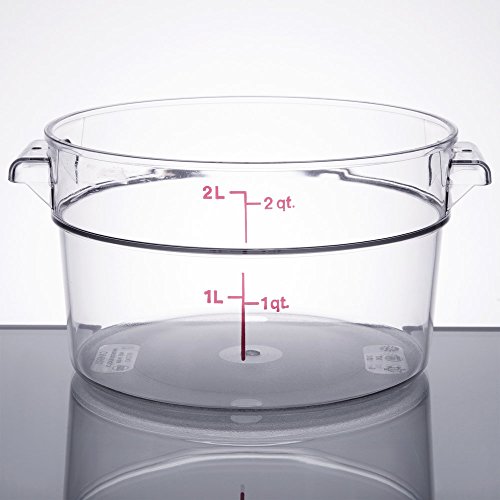 Royal Industries Round Food Storage Container and Lid, Polycarbonate, 2 QT, 8 Width x 8 Length x 4 Height, Clear, Commercial Grade, - Measuring Spoon Gift Included
