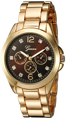 Geneva Women's GV/1008BKGB Crystal-Accented Gold-Tone Bracelet Watch
