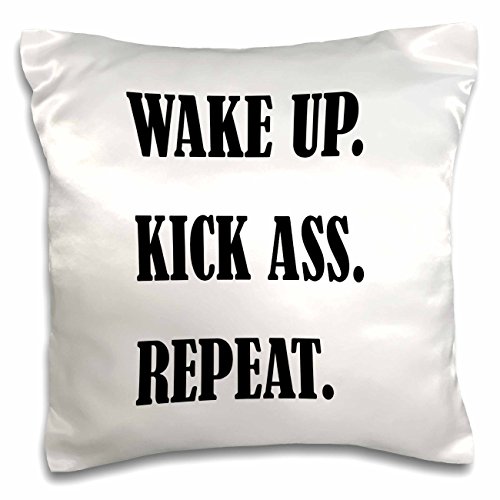 3D Rose Wake up Kick Ass Repeat Pillow Case, 16" x 16"