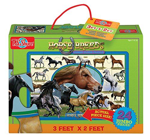 -. Feature : This detailed Horse Breeds jumbo floor puzzle has 24 jumbo puzzle pieces, and is 3 feet by 2 feet! / The sturdy jumbo puzzle pieces are easy for small hands to handle, developing advanced hand-eye coordination. / The colorful illustration features an array of your favorite horse breeds lively detail, encouraging object recognition and storytelling. / Store and carry your puzzle in the convenient puzzle box with carrying handle. / Perfect for ages 3 and up.