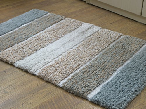Chardin Home - 100% Pure Cotton - 2 Piece Cordural Stripe Bath Rug Set, (24''x40'' & 21''x34'') Gray-Beige with Latex spray non-skid backing