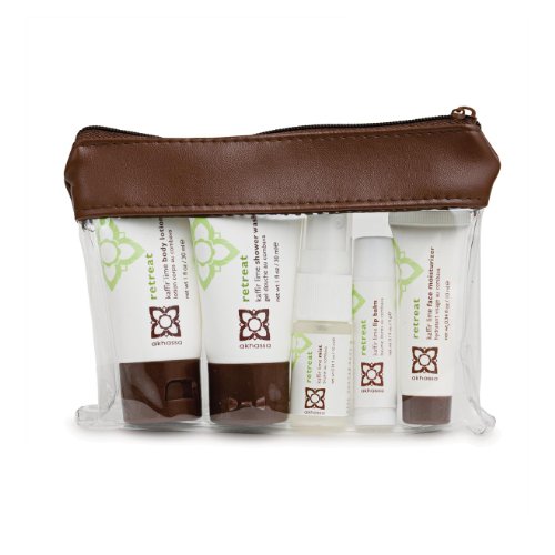 -. Feature : This retreat set includes 1oz. Shower Wash, 1oz Body Lotion, 0.34oz Face Moisturizer, 0.34oz Body Mist and Lip Balm in Kaffir Lime / Crisp and delicious Kaffir Lime scent / Moisturize and cleanse on the go / Made with natural antioxidants that will nurse your tired skin back to vitality / These products are widely used throughout Asia as mood enhancers