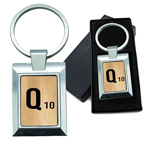 BleuReign(TM) Monogram Wooden Letter Q Rectangle Metal Keychain