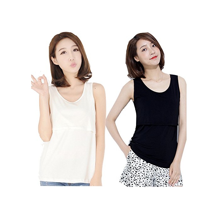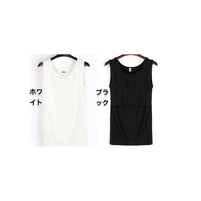 이것 한 장에 춘하추동,수유 후도.베이직인 무지 디자인 수유 탱크 탑 ♪♪ 수유구 부착 이너 탱크 탑 2매 셋트 블랙 화이트
