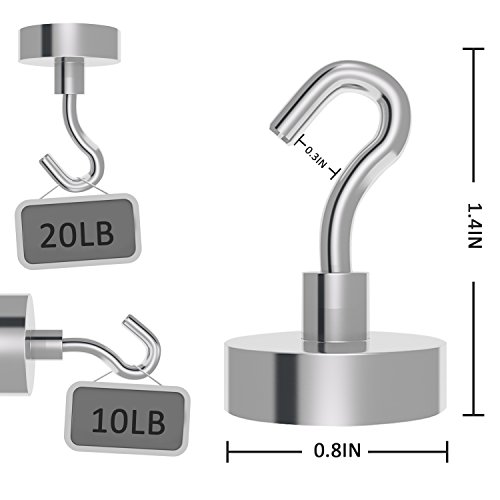 ANPHSIN 8 Pack of Strong Powerful Heavy Duty Magnetic Hooks - 20LB Stainless Steel Hanging Hooks for Home and Industry Use