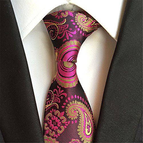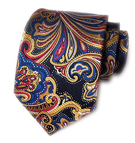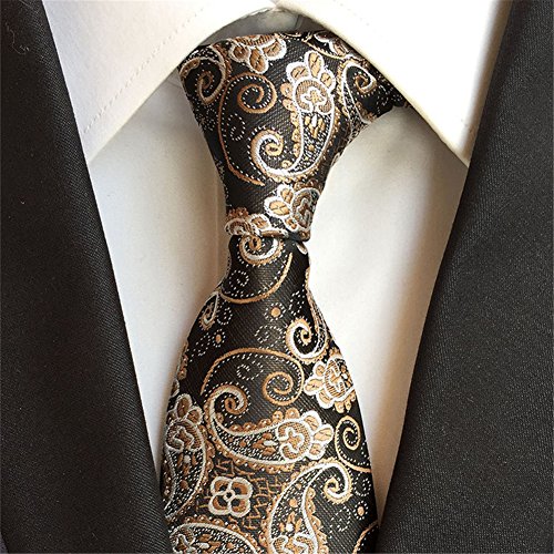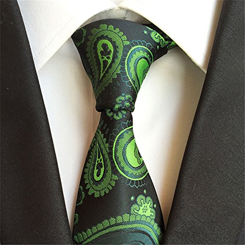 1) Embrace the opulent extravagance of high fashion with this art deco inspired floral patterned necktie in sensational shades of olive greens and blacks. The deeply saturated shade of green looks stunning when paired with dark charcoals and proper blacks.( also available black gold blue, red, blue, purple, rose red) 2)Pull together a knockout look for your next night out on the town by partnering this tie with a classic point-collar white dress shirt, a black velvet blazer and straight leg black denim jeans.
