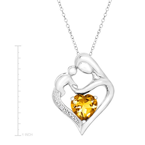 -. Title : Natural Heart-Cut Citrine Mother & Child Heart Pendant Necklace with Diamond in Sterling Silver, 18"