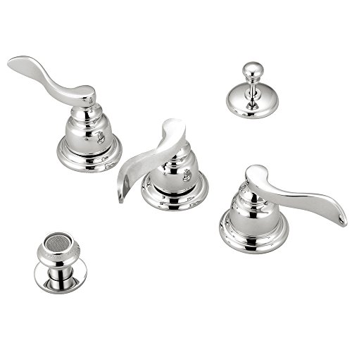 -. Title : Kingston Brass NuWave French Bidet Faucet with Three Lever Handles and Brass and ABS Plastic Pop-Up